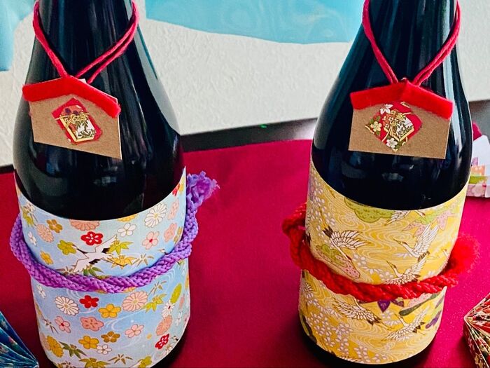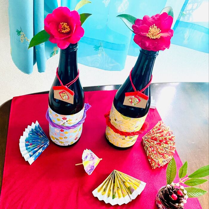 和風の千代紙を使うと、アレンジ次第で簡単にお正月飾りができますよ。