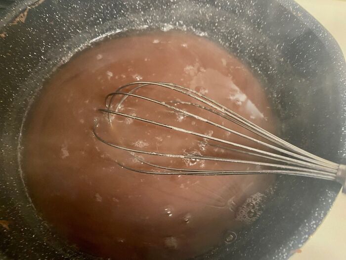 なめらかになり、粉末寒天も完全に溶けたら火から下ろします。