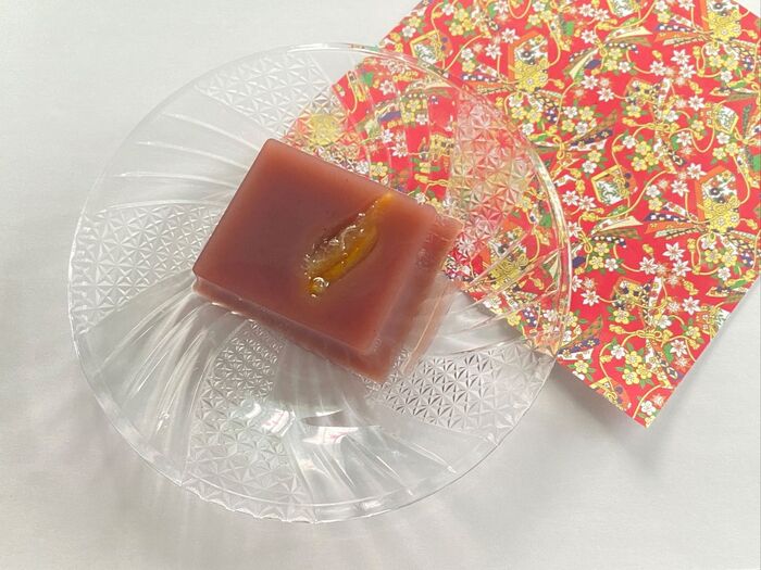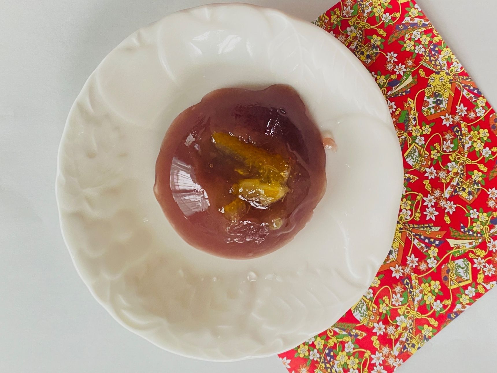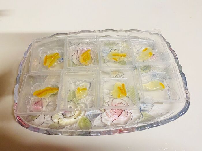 ②予めクリアな容器に柚子ジャムをひと匙ずつ入れます。