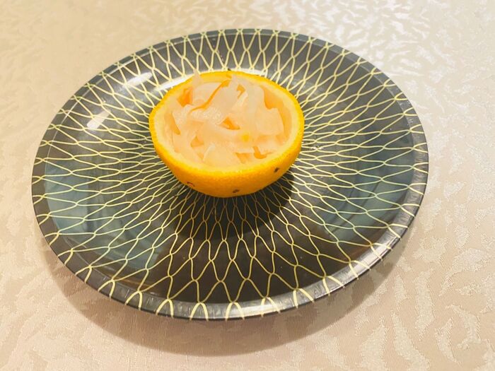 柚子を半分にカットして中身をくり抜き(くり抜いたものは料理にお使いください)