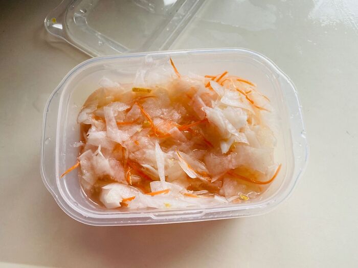 紅白なますを詰めるとお正月らしくなり素敵ですよ。