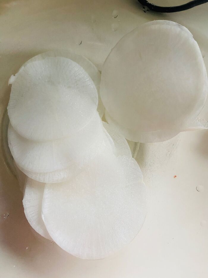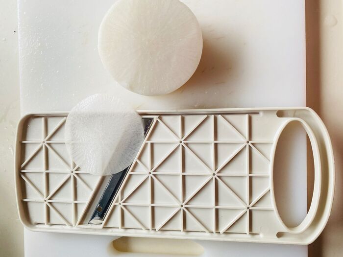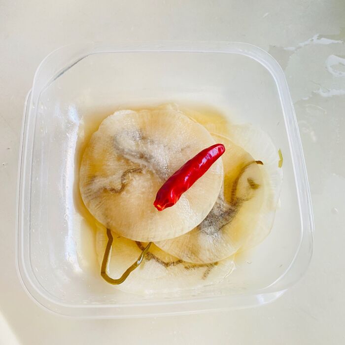 大根の千枚漬けを甘酢漬けにしても美味しいですよ。