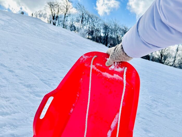 ひたすらソリで滑って遊びました(笑)。