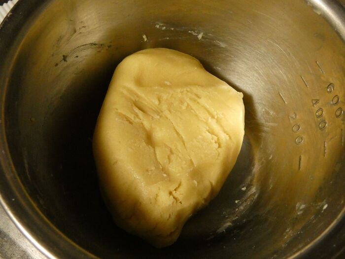 薄力粉とベーキングパウダーを混ぜ合わせます。牛乳を混ぜ合わせて固さを調節します。
