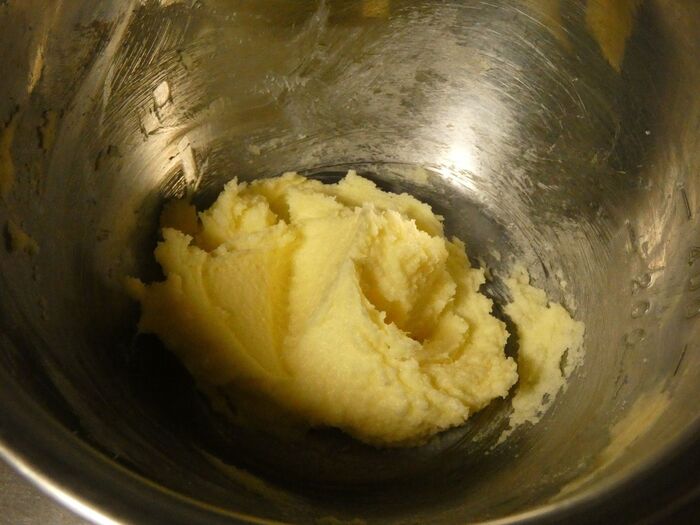 室温で柔らかくしたバターと砂糖をよく混ぜ合わせます。