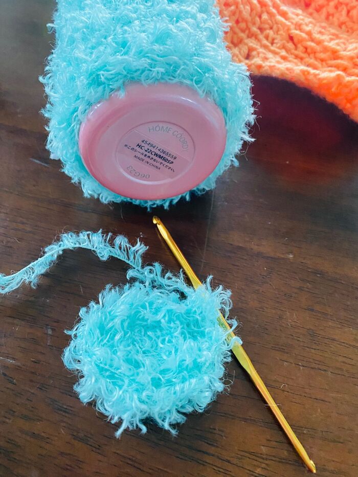 底の部分を編み目を増やしながら、水筒の底の大きさになるように長編みで円形に編みます。