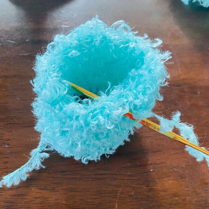 編み目の始めと編み目の終わりを輪っかになるように合わせ編みをします。