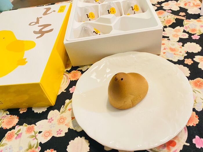和紙の袋を外すと、食べるのがもったいないくらい可愛い「ひよ子」のお目見えです。