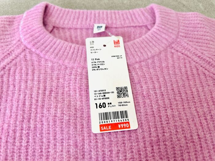 ユニクロのサイズ160は、身長155-165が対象なので…