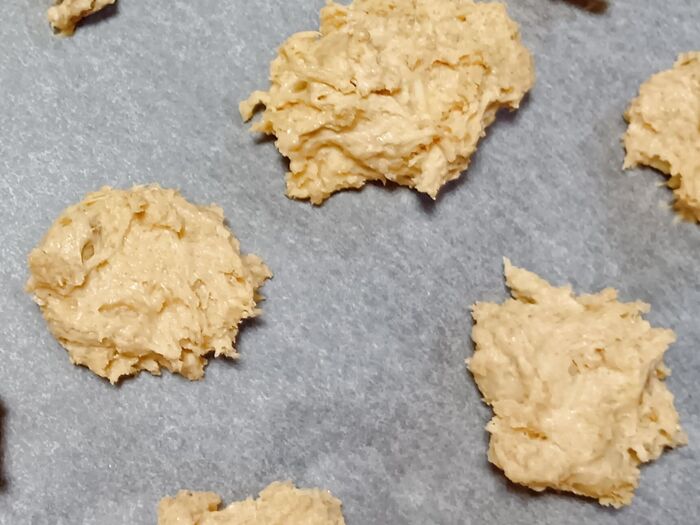 ③ 天板にクッキングシートを敷き、スプーンで食べやすい大きさ(約4~5cm)の丸い形に整えます。