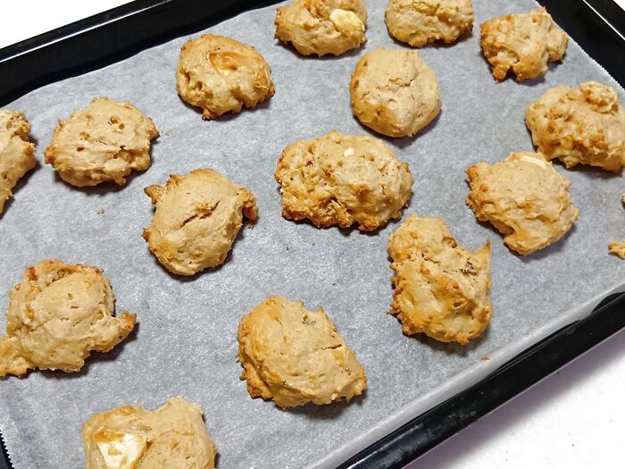 •バターやベーキングパウダー(生地を膨らませるもの)を使わず、材料を混ぜて焼くだけで簡単に完成します。