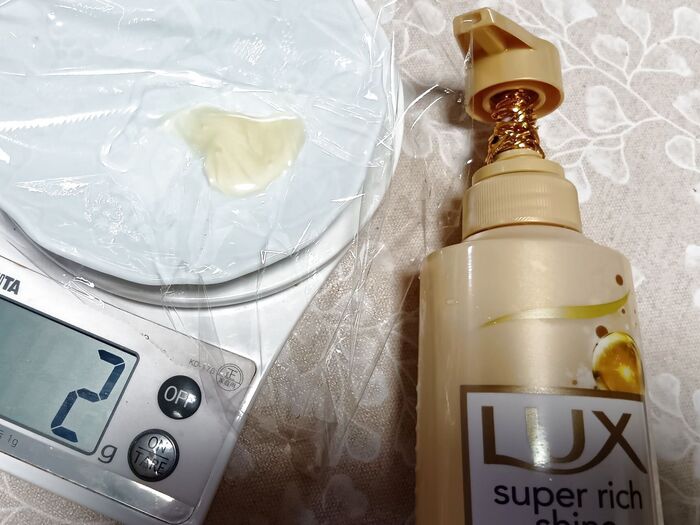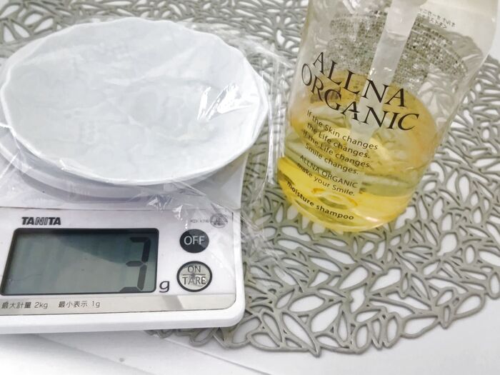 こちらのシャンプーも試してみますね。今は1プッシュで3g出てきますが…