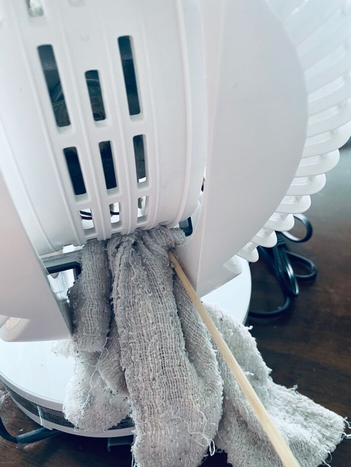 隙間を利用して、傷がつかないように竹串などを刺しながら、埃を絡ませます。
