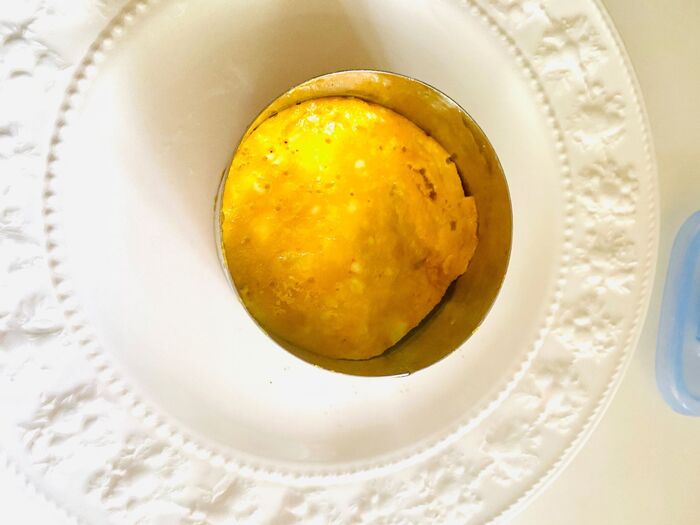 桜でんぶを乗せ、セルクルリングを外します。