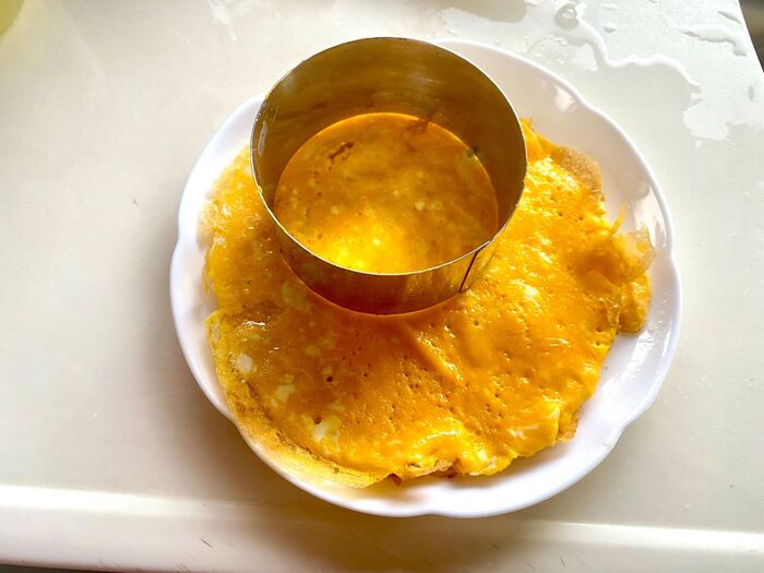 薄焼き卵を乗せます。