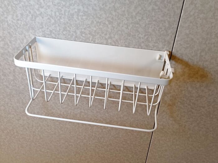 私は洗濯機とお風呂場の隙間にマグネットバスケットを使用しているのですが、その際は眼鏡シャンプーなども画像のようにかけています。サッと取り出せるので、使い勝手がとても便利です!