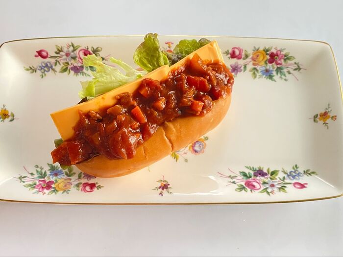 ホットドッグロールを、オーブントースターで1分ぐらい温めます。
