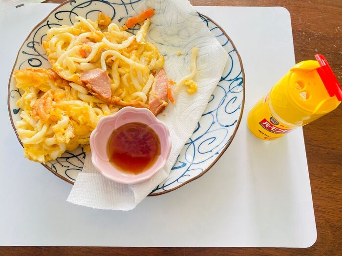 天つゆに飽きたら、カレーパウダーをパラパラします。