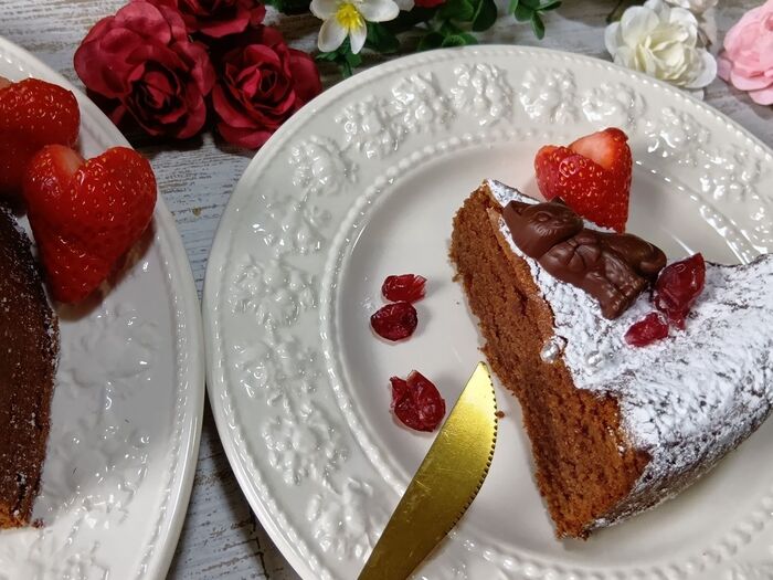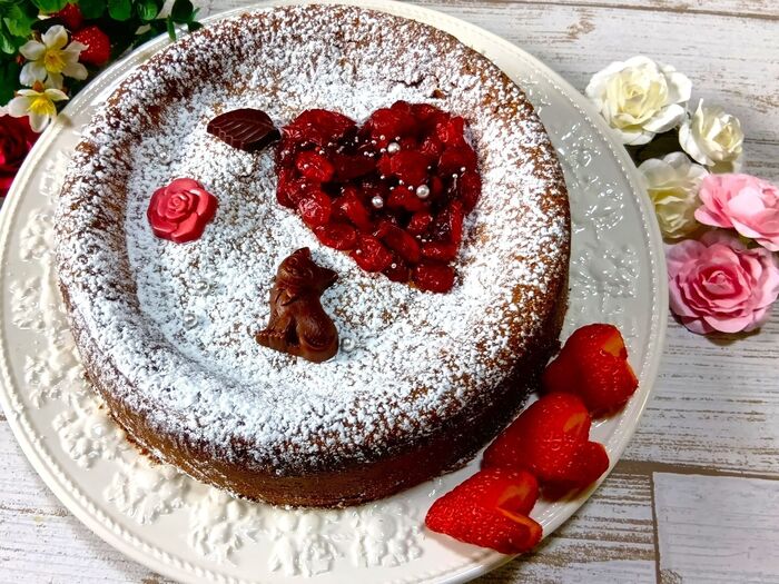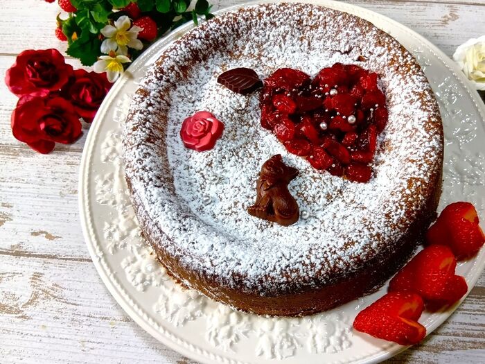 実はクッキー型をたくさん持っているんですが、特にお気に入りなのが大きめのハート型! 今回はその大好きなモチーフを使って、チョコケーキに、かわいくデコレーションしてみました!