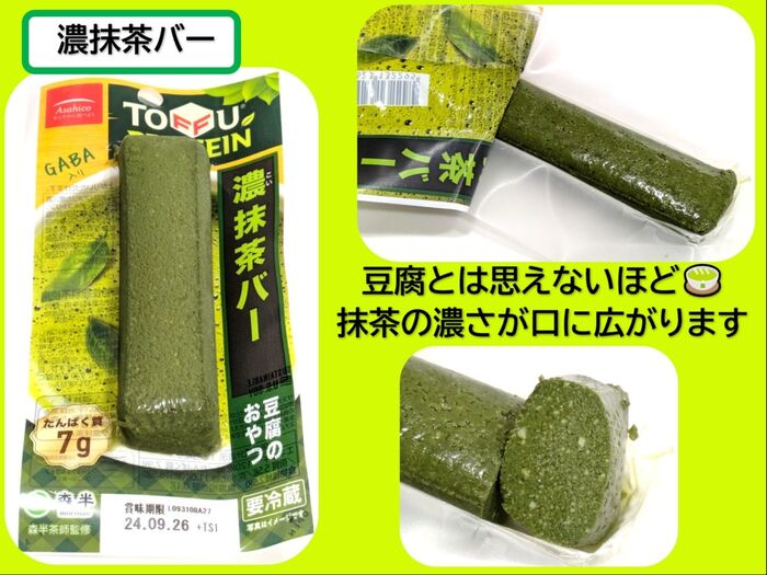 『濃抹茶バー』は、ネーミング通り“濃い抹茶”の味わいでしたが、『お豆腐でつくった抹茶テリーヌ』は、抹茶の味わいがもう少しまろやかな感じがしました。