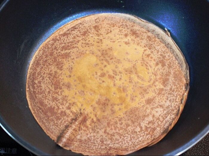 うっすら焼き色がついたらフチをフライ返しなどではがし、あとは手で裏返す。裏面は20秒ほどでOK。