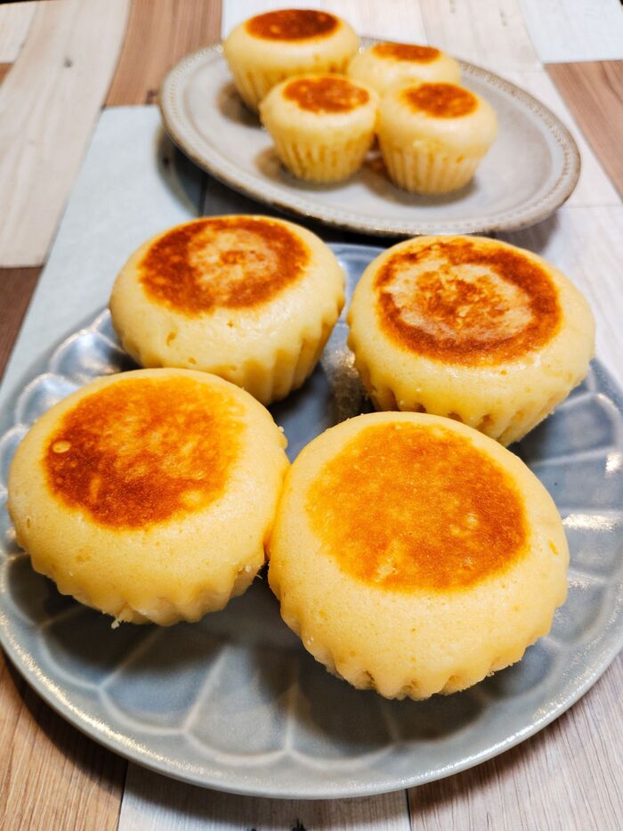 フライパンを中火に熱し、取り出した型をさかさまに軽く押し付ける。焦げ目がついたら完成。型から外す。