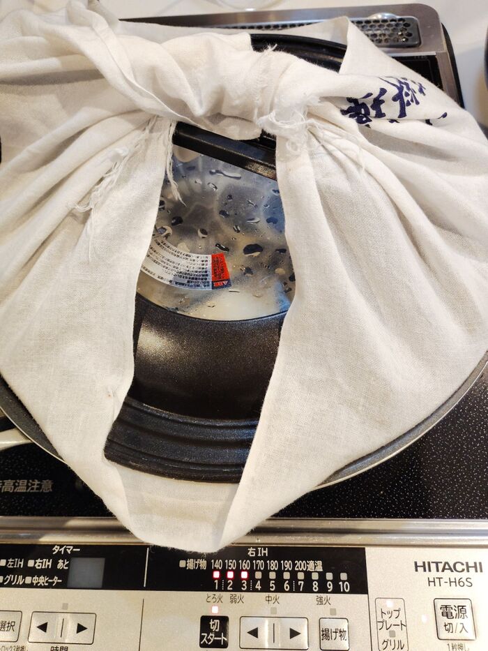 フタに手ぬぐいなどを巻き付けておくと、水分を吸収してくれて、生地に落ちません