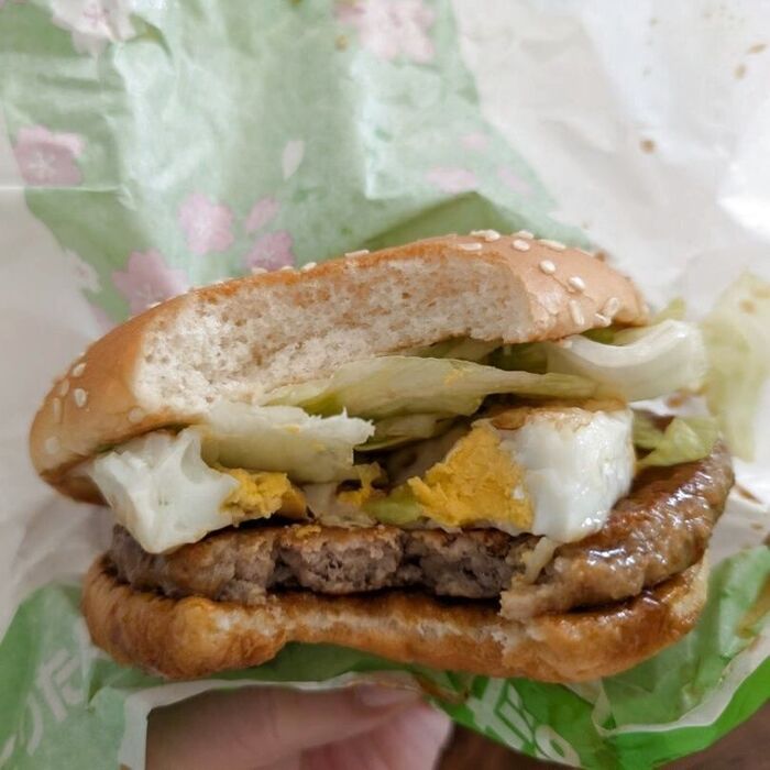 甘辛いてりやきソースをまとったポークパティ、プリプリ食感の卵、しゃきしゃきレタス、たっぷりマヨネーズ!!てりたまってこんなに美味しかったっけ??