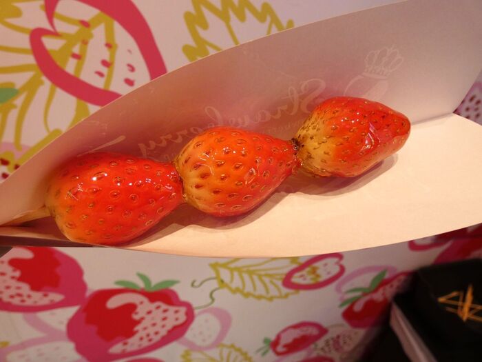 いちご飴は、飴が薄付きでパリッとそして苺がジューシー!!