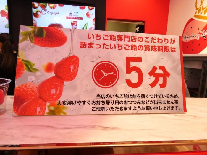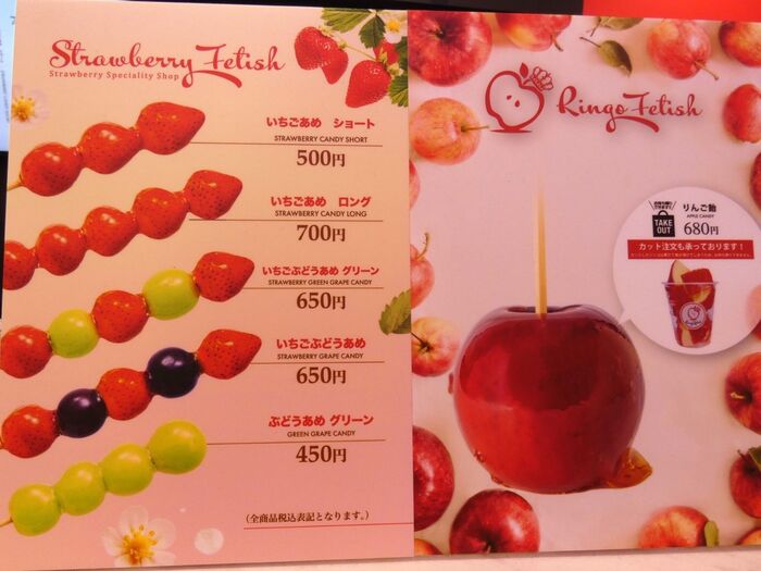 メニューは、いちご飴・ブドウ飴450円から選べます。