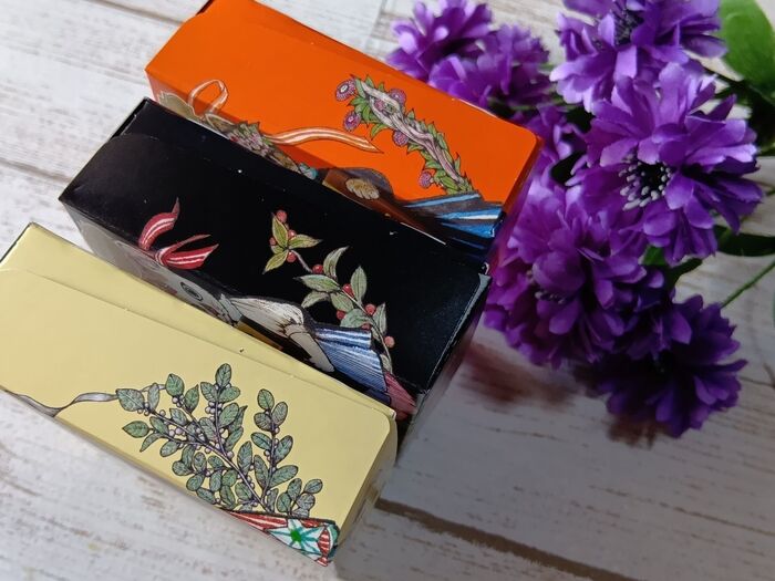 箱の側面には、ミステリアスな植物が描かれていて、猫だけでなくその植物もすごく素敵なんですよね!少しシュールな絵柄がまた良いんですよね!独特な雰囲気があって、見ているだけで楽しくなります。