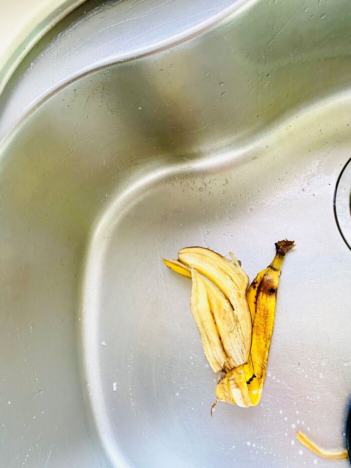 食べ終えたバナナの皮をシンク全体に擦り付けました。