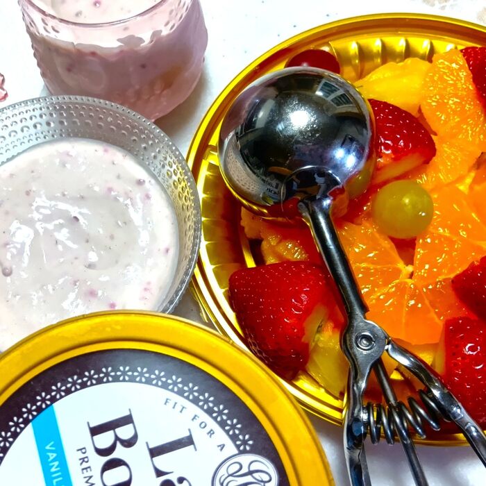 余った果物は別皿に粗めにカットして入れておき、食べ進めた際に、お好みで、追加して食べれるようにしておきます。