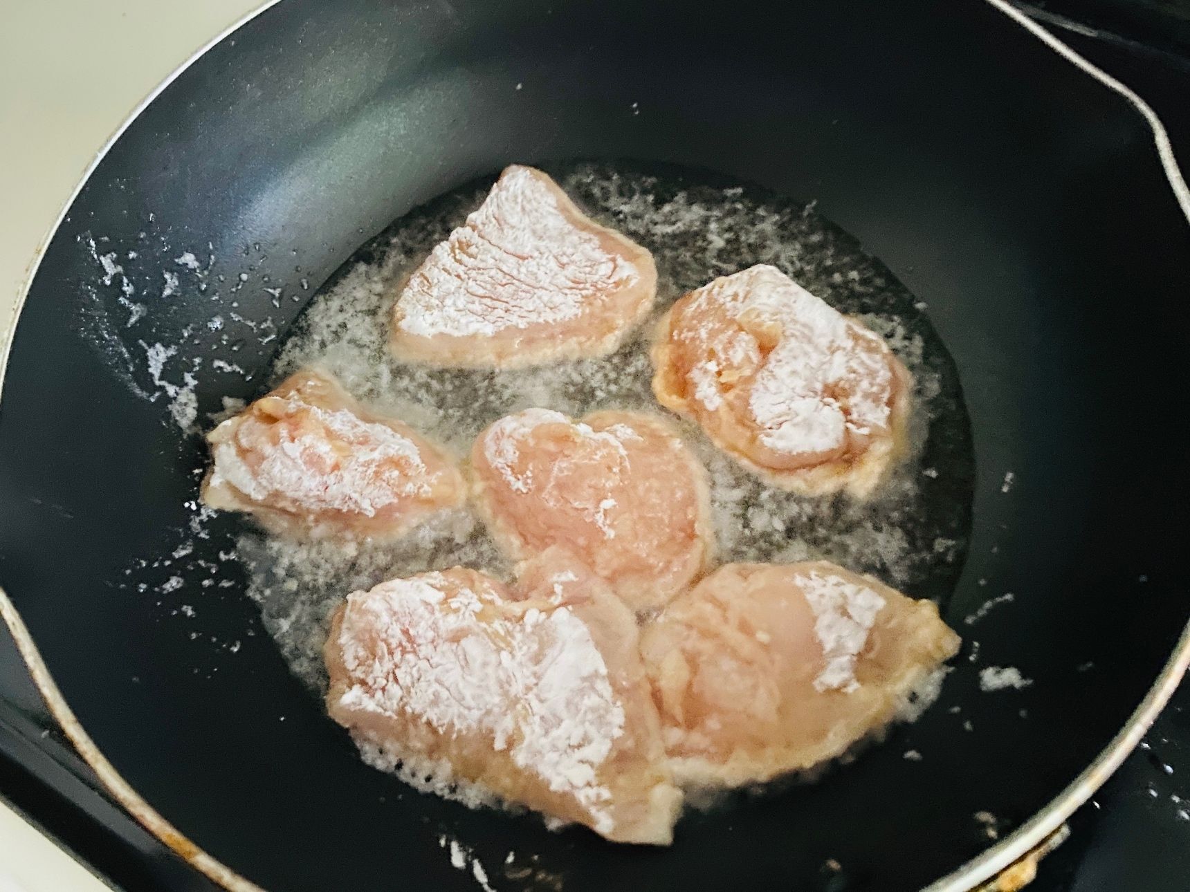 ひっくり返して、中まで火が通りましたら、よく油を切っておきます。