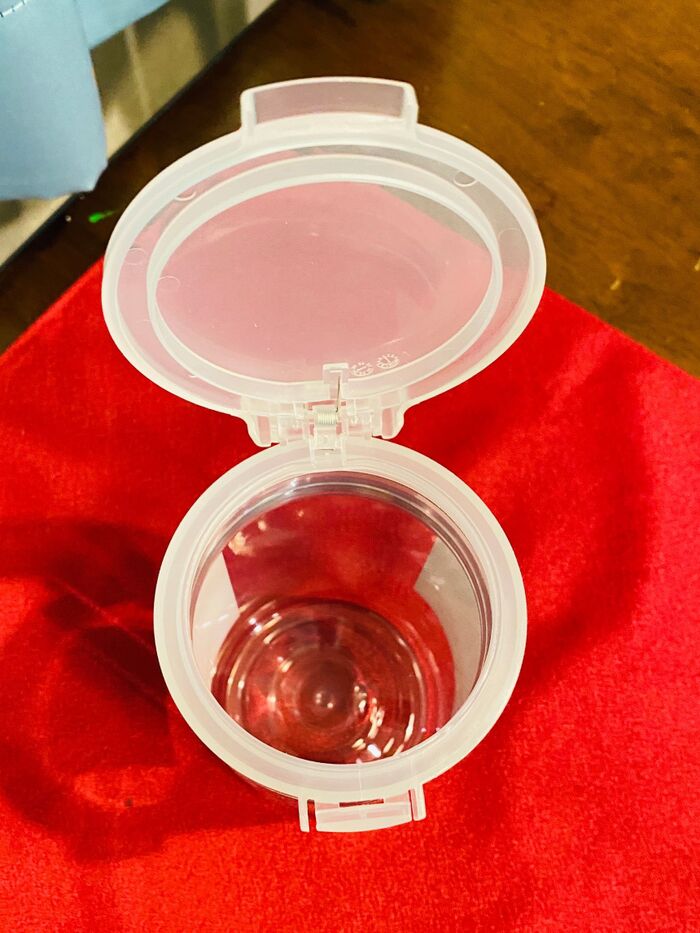 材質は本体「PET」、フタ「ポリプロピレン」、バネ「ステンレス銅線」