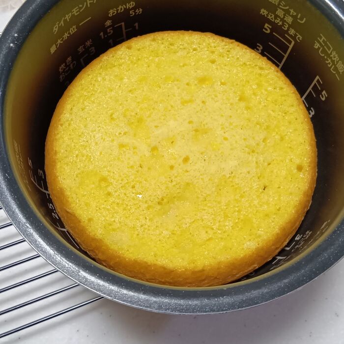 ④焼き上がったら内釜からケーキを取り出し、ケーキクーラーの上で冷まします。