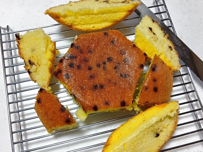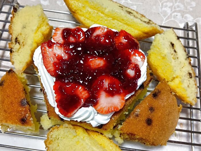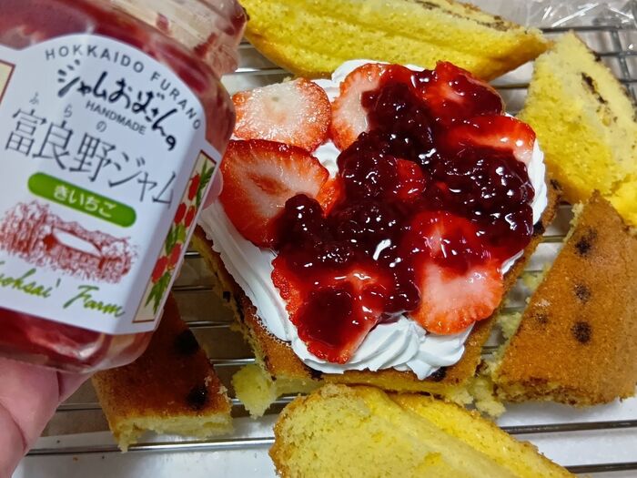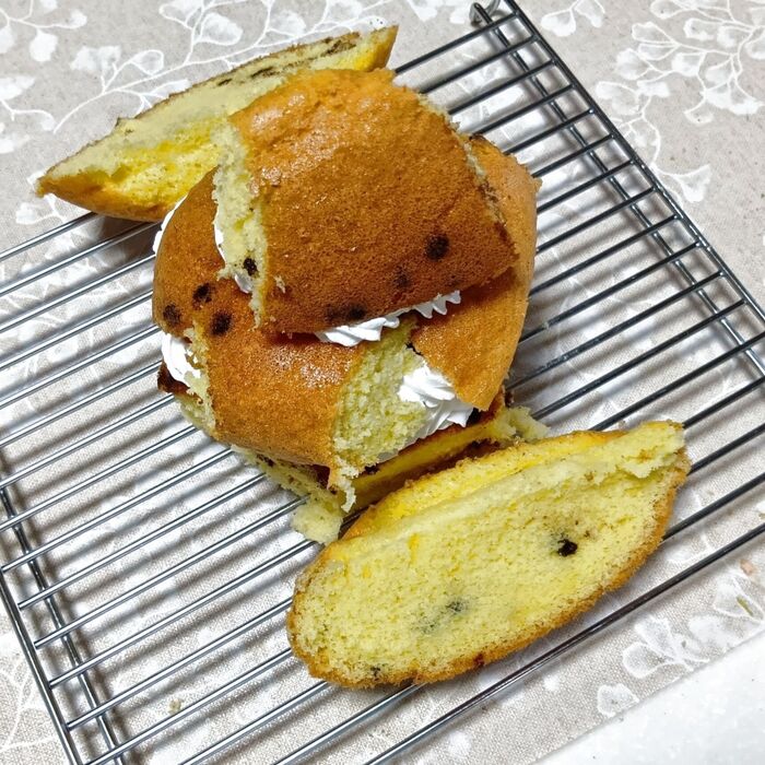 余ったスポンジケーキは、ラップで巻いておいてください。そのままでも美味しく頂けます。