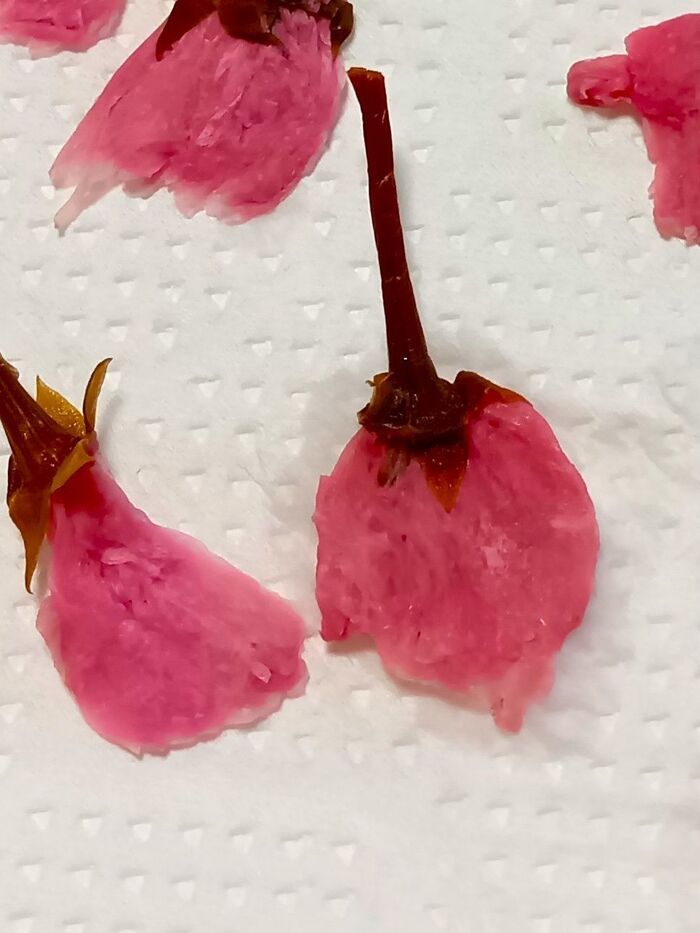桜の塩漬けは塩を除いて水気を切り、形を整えます。