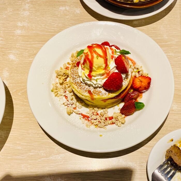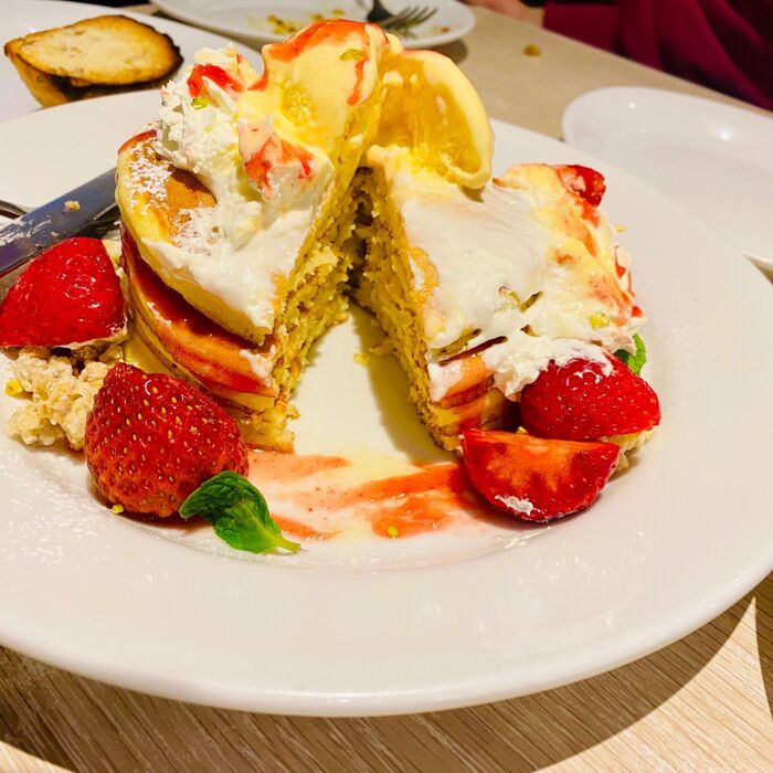 ふんわりとしたパンケーキが、4段のタワーになっています。