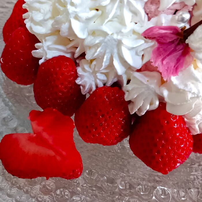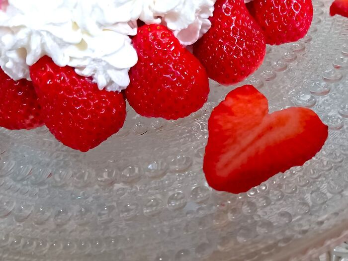 •あまおう苺は薄切りにし、3枚をハート形にします。