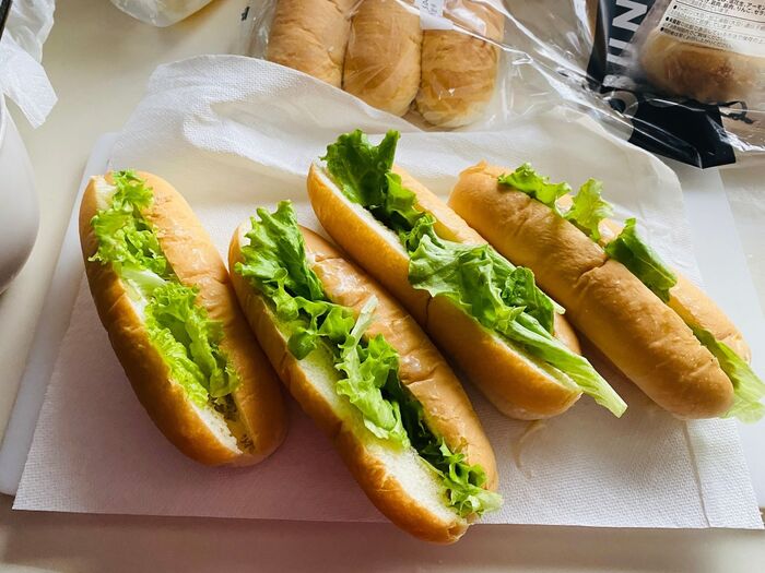 バンズは、縦に切れ目を入れます。レタスは水でささっと洗い、キッチンペーパーで水分をよく拭き取ります。