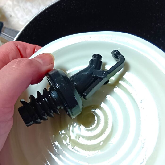 以前はスプレー式のオイルボトルを使っていたんですが、使い続けるうちに詰まりやすくなってきて、何度か買い替えることに…。