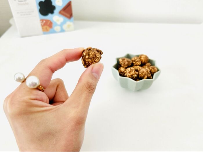 香ばしいキャラメルとベルギー産チョコレートが絡まったポップコーン。
