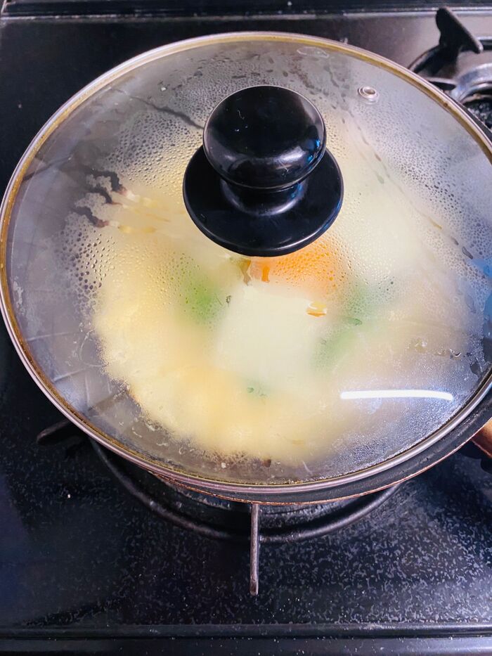 蓋をして、卵を安定させます。