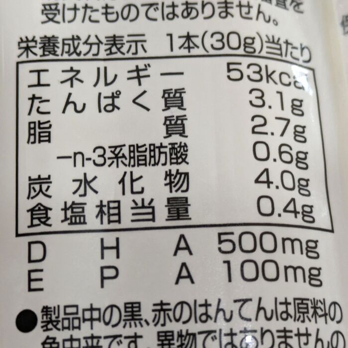 n-3系脂肪酸(DHA・EPA)を手軽にとれるのは便利だと思いました。味もいい意味で主張しすぎない魚肉ソーセージで食べやすかったですし、サラダやスープなどに入れて食べることもできるので使い勝手がイイです。