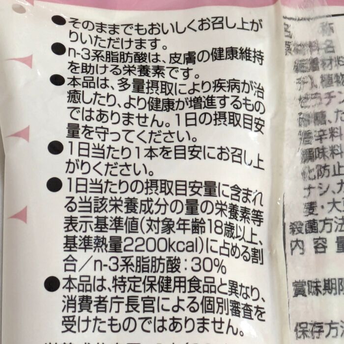 ●肌の健康維持をサポートする成分として、1本あたりにn-3系脂肪酸(DHA・EPA)を600mg配合した栄養機能食品なんですよ(*'▽')