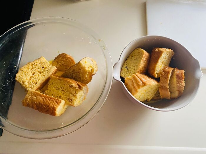 塩味系と甘系のフレンチサンドを作るので、半分ぐらいに分ます。