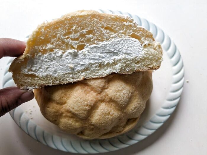 メロンパンは、外サクッ中フワ~たっぷりひんやりクリームは、甘さもあっさりでとっても美味しかったです!やっぱり冷やして食べるのがおすすめです!