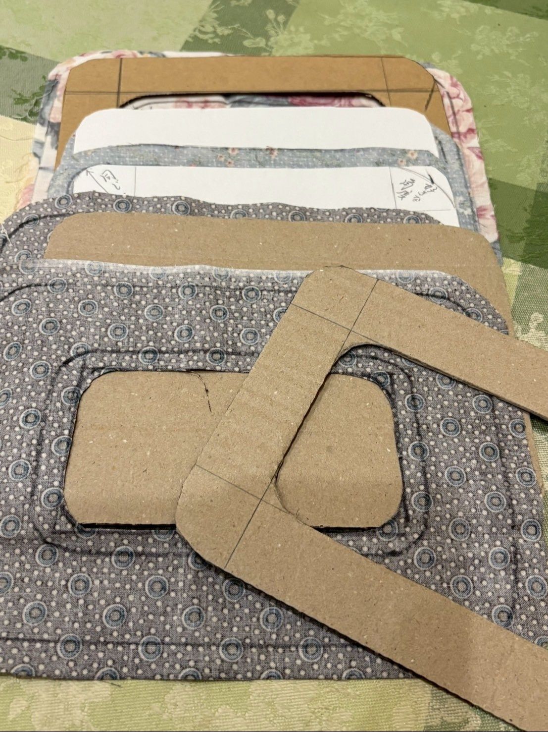 フレームの穴から見えるところだけでも良いですが、裏布と同じにカットして貼り込みました。