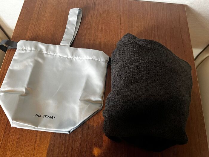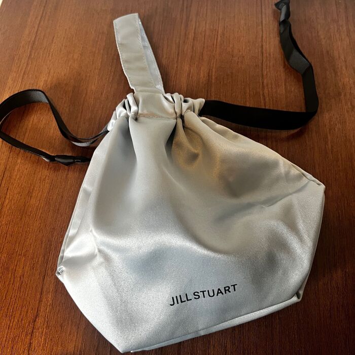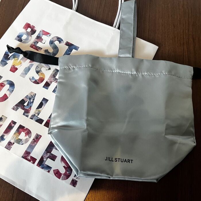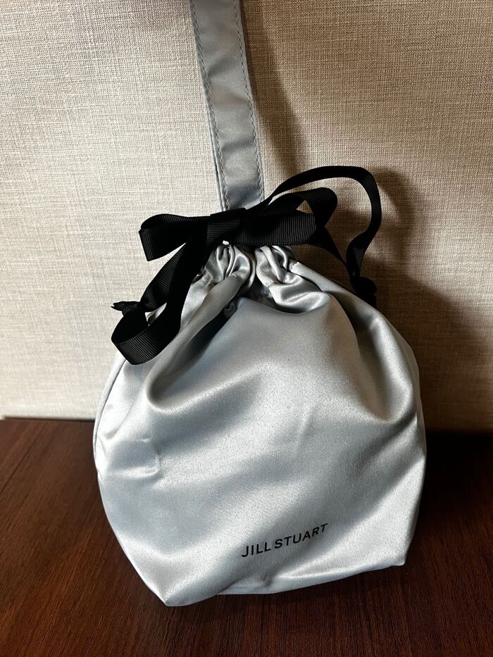 肝心の付録は、大人かわいいブルーのサテン生地巾着。